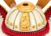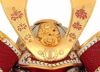 金色に紅白の正絹糸を組み合わせて威した、とても色鮮やかな兜です。