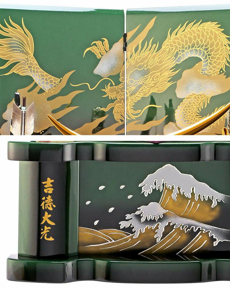 他の画像を見る 【送料無料】最安値に挑戦!2026年度新作 五月人形 五月人形 コンパクト 久月 兜収納飾り 兜飾り 彩一閃 天空 緑翠 12号 龍二曲屏風 櫃型収納箱 【2026年度新作】 h085-k-61316 D-34 ¥ 151,800 税込 カートに入れる お気に入りに登録する