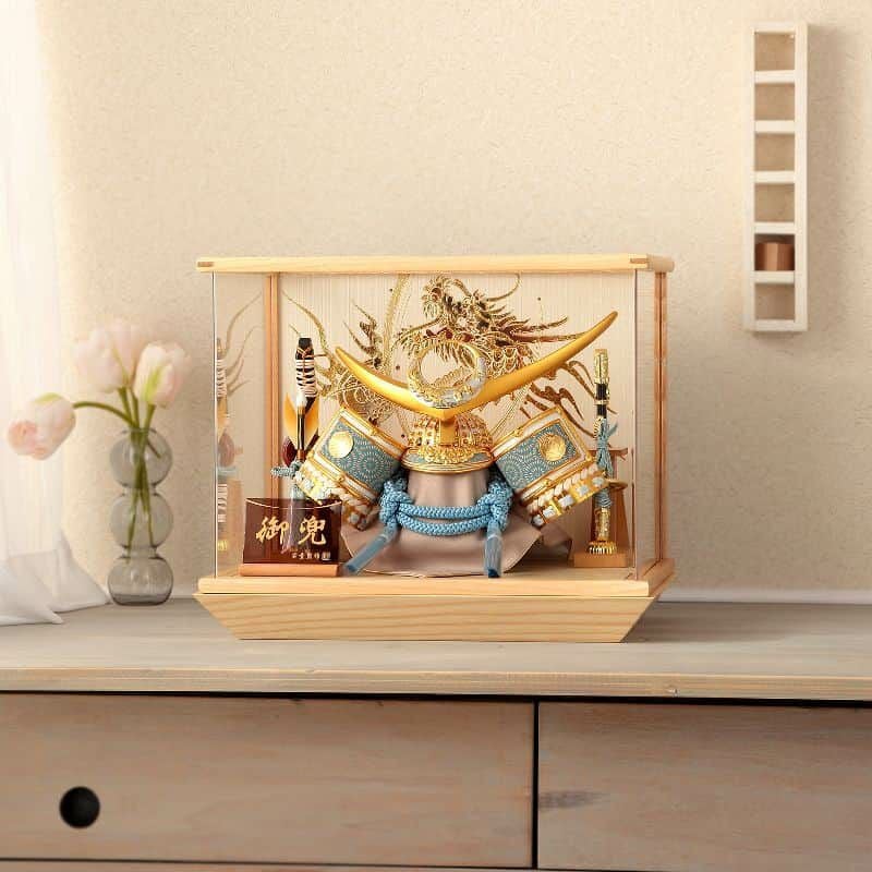 宝童監修「白金北斗上杉兜」8号ケース飾りです。