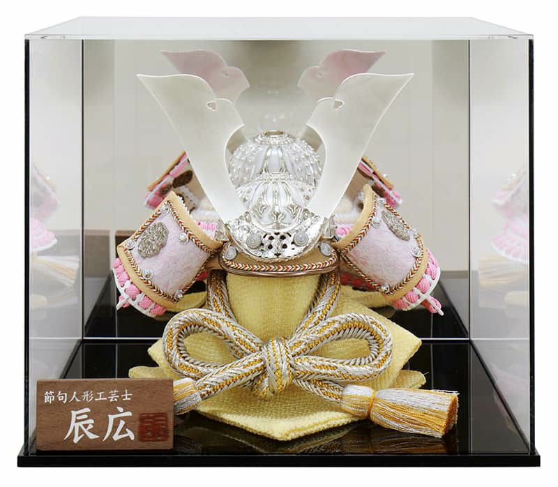 【送料無料】最安値に挑戦!年度新作 五月人形 五月人形 コンパクト 兜ケース飾り 兜飾り 辰広作 本小札 ピンク白糸縅 1/6 鏡付アクリルケース 【2024年度新作】 h065-fz-5250-04-012