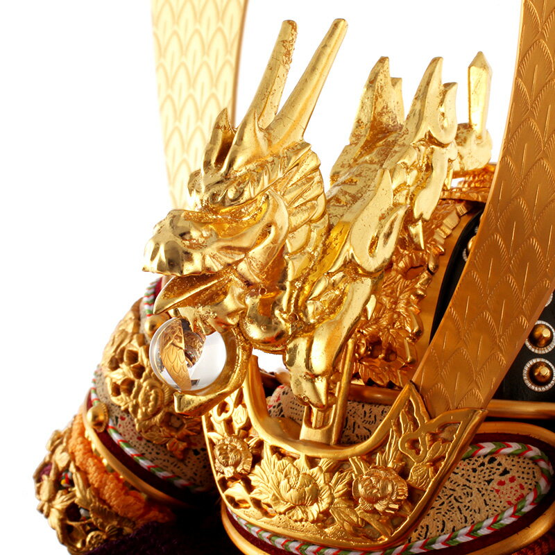 兜の前面には玉を携えた龍が配されました。立身出世の象徴、神の遣いとも呼ばれる龍は、古来より縁起の良いモチーフです。