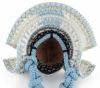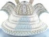シルバーを基調に仕立てたスタイリッシュな兜は、牡丹の彫金細工が随所にあしらわれ、細部まで丁寧に作られています。