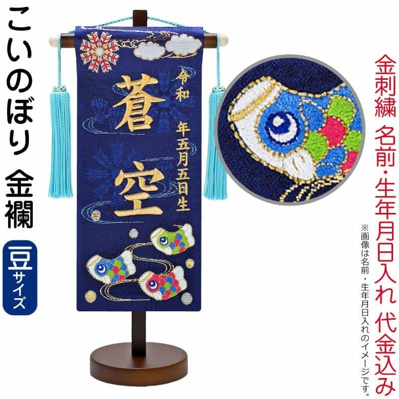 【送料無料】最安値に挑戦!2026年度新作 五月人形 五月人形 名前旗 座敷旗 タペストリー こいのぼり (豆) 金襴 スタンド付 金刺繍 生年月日 名前入れ代金込み 【2026年度新作】 5ad-koinob