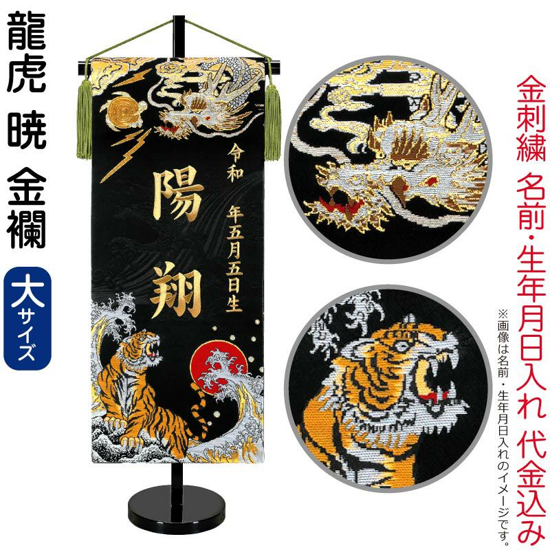 【送料無料】最安値に挑戦!2026年度新作 五月人形 五月人形 名前旗 座敷旗 タペストリー 龍虎 暁 (大) 金襴 スタンド付 金刺繍 生年月日 名前入れ代金込み 【2026年度新作】 5ad-ryuaka-l