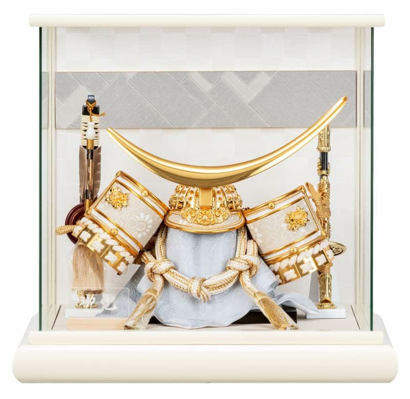 【送料無料】最安値に挑戦!2024年度新作 五月人形 五月人形 伊達政宗 兜ケース飾り 兜飾り 8号 オフホワイト パノラマケース 【2024年度新作】 h065-moys-613