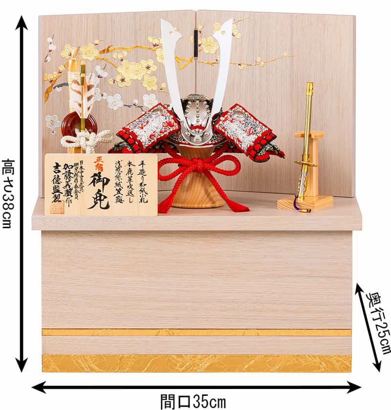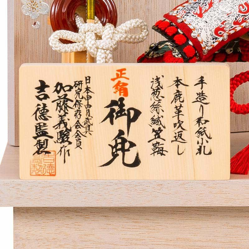 創業正徳元年(1711)、江戸で最古の人形の老舗、吉徳大光監製、加藤義駿作の1/4兜収納飾りです。