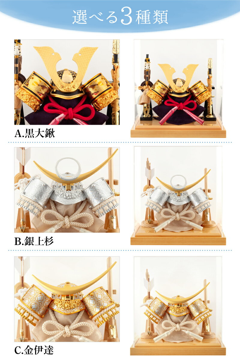 【送料無料】最安値に挑戦!2026年度新作 五月人形 五月人形 コンパクト 兜ケース飾り 兜飾り 4面アクリルケース 弓太刀付 【2026年度新作】【選べる3種類】 h075-aaa-y5-1