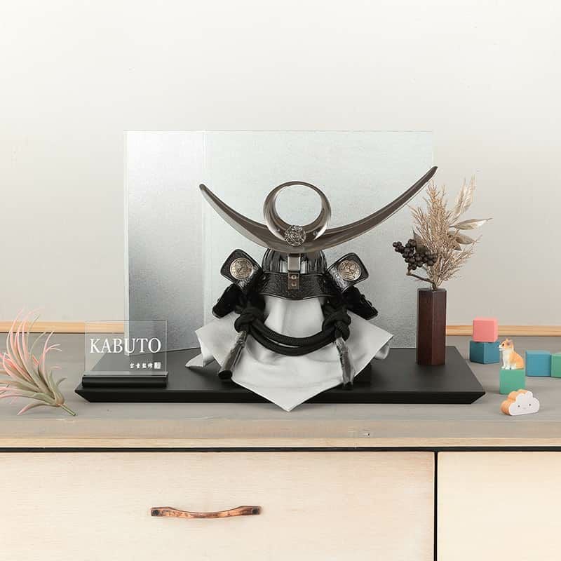 全体をモノトーンの色調で揃えた、スタイリッシュな兜飾りです。