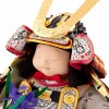 鎧着人形では珍しい書き目のお顔は、見ているこちらも心和むかのような、なんともいえない愛らしい表情が魅力的ですね。