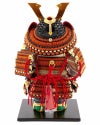 3.2mm巾の小札と色鮮やかな茜糸を用いて威し上げた鎧は、細部まで精巧に作り上げられています。