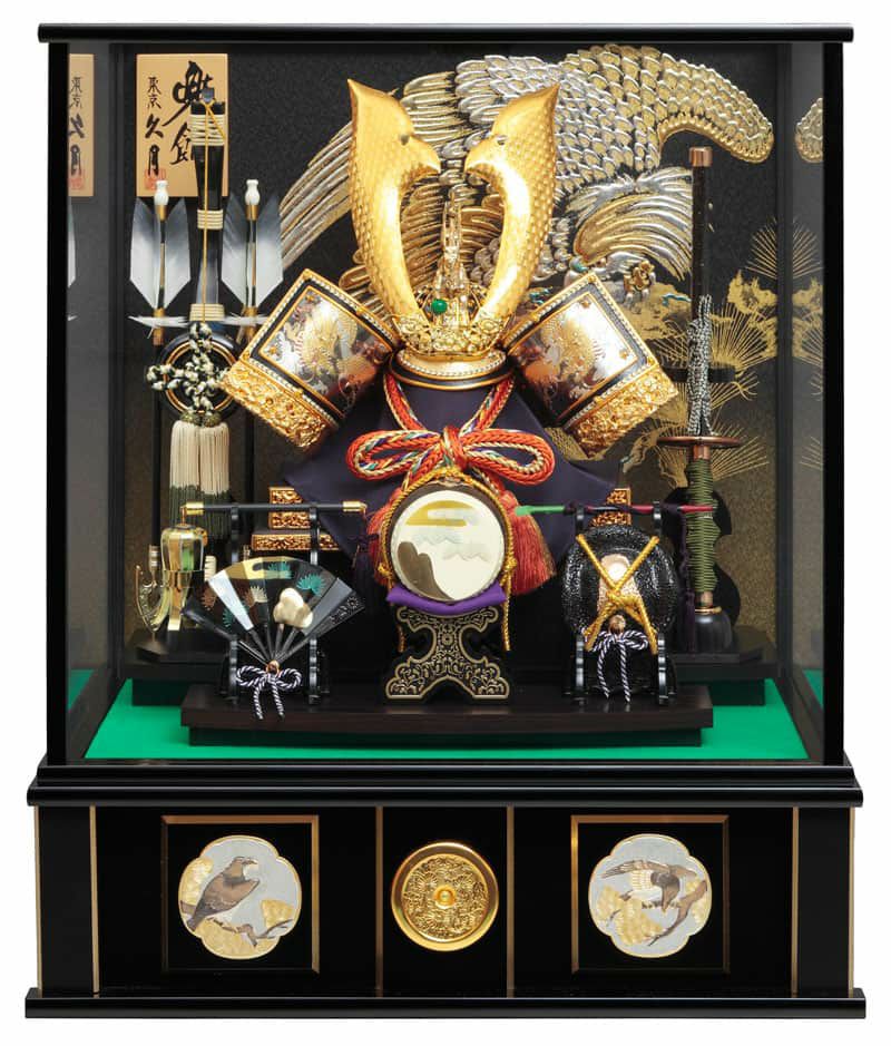 【送料無料】最安値に挑戦!2026年度新作 五月人形 五月人形 久月 兜ケース飾り 兜飾り 13号兜 取付ケース入 彫金黒塗ケース 【2026年度新作】 h075-k-k51024a C-38