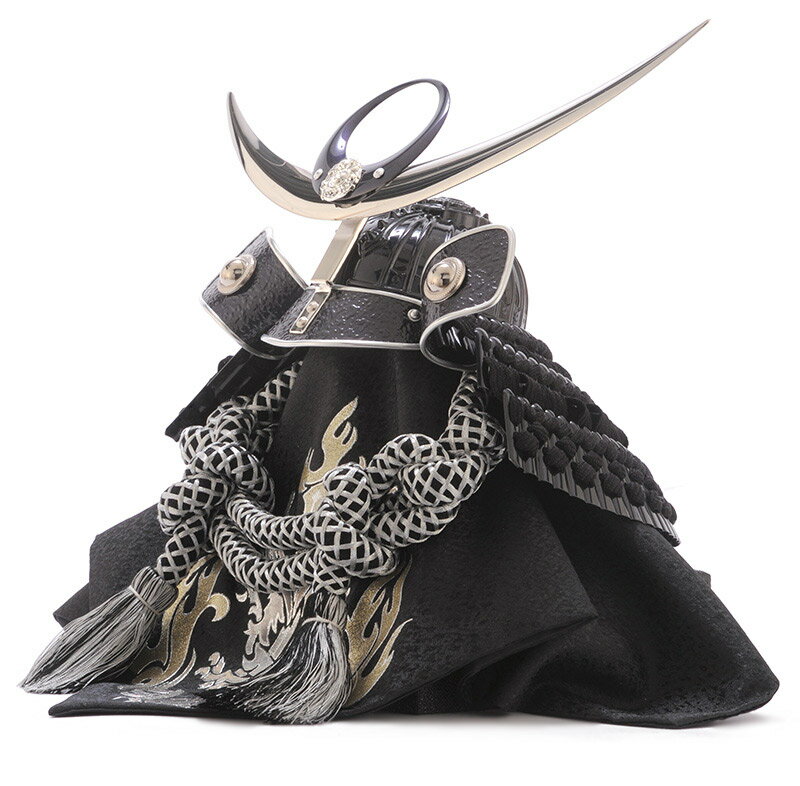 兜は日輪に三日月の前立が目をひく、名将上杉の兜。シンプルななかにも男らしさを感じさせるひと品です。