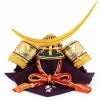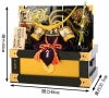 スラっとした弦月前立が印象的な人形武将、伊達政宗公を模した兜収納飾りになります。コンパクトなサイズながら精緻な作りが見どころです。