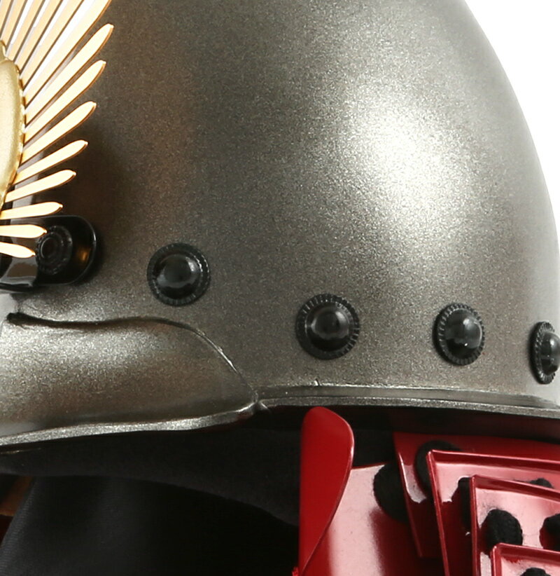 畳を打った黒塗り台に金箔屏風という伝統的な組み合わせで、本格兜をじっくり堪能していただける一式です。