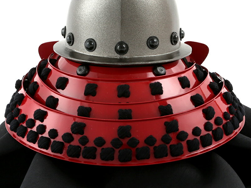 錣(しころ)は赤小札を正絹の黒糸で素懸縅(すがけおどし)に仕立てています。
