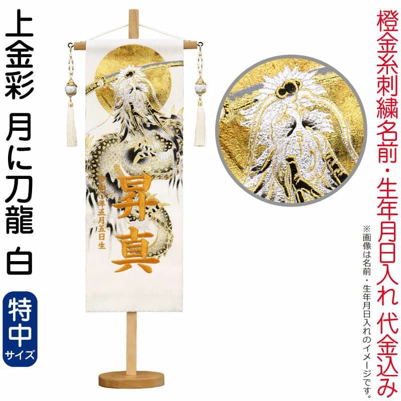 【送料無料】最安値に挑戦!2026年度新作 五月人形 五月人形 こいのぼり 名前旗 村上鯉 室内飾り 上金彩(特中)月に刀龍 白 銀玉龍飾り スタンド付 橙金糸刺繍 生年月日 名前入れ代込 【2026年度新作】 mk-name5-660-623