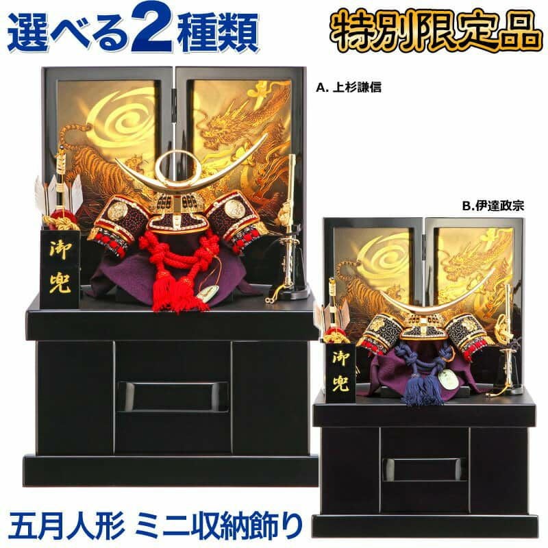 大手人形問屋の製造メーカと当社が共同開発した、ミニサイズの名将収納飾りのご紹介です。