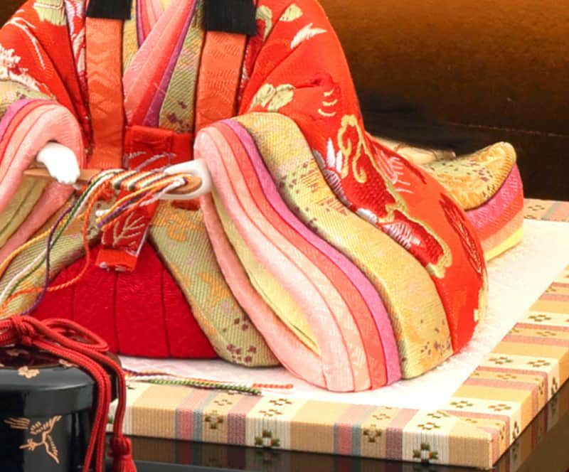 幾重もの重ねを施した衣裳は、大変細やかで職人の高い技量を見て取る事ができます。