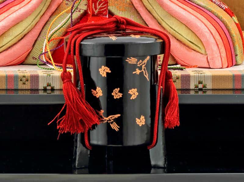 また、小気味良く鶴と蝶の金彩をほどこした貝桶に燭台や、高品質な金沢箔屏風など、伝統的な様式でシンプルな一式ながら、細部まで妥協することなく本物を追求した逸品、まさに一生ものとも言える気品と上質さを兼ね備えた至極のお品です。