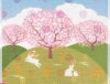 絵柄はカラフルな桜とうさぎを染め上げたかわいらしい仕立てです。