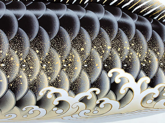 腹部に波柄を描いた躍動感あふれるデザインは川面を元気に泳ぐ鯉の勇姿を表現。
