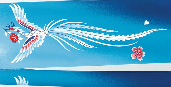 吹流しには高貴なイメージの鳳凰を描き、高度なぼかし染技術により微妙な濃淡が表現されています。