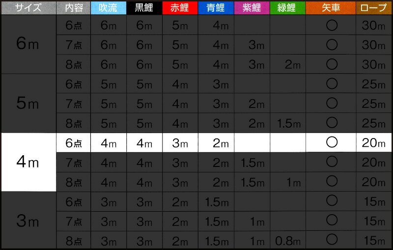 セット内容:吹流4m 黒鯉4m 赤鯉3m 青鯉2m 矢車 ロープ20m