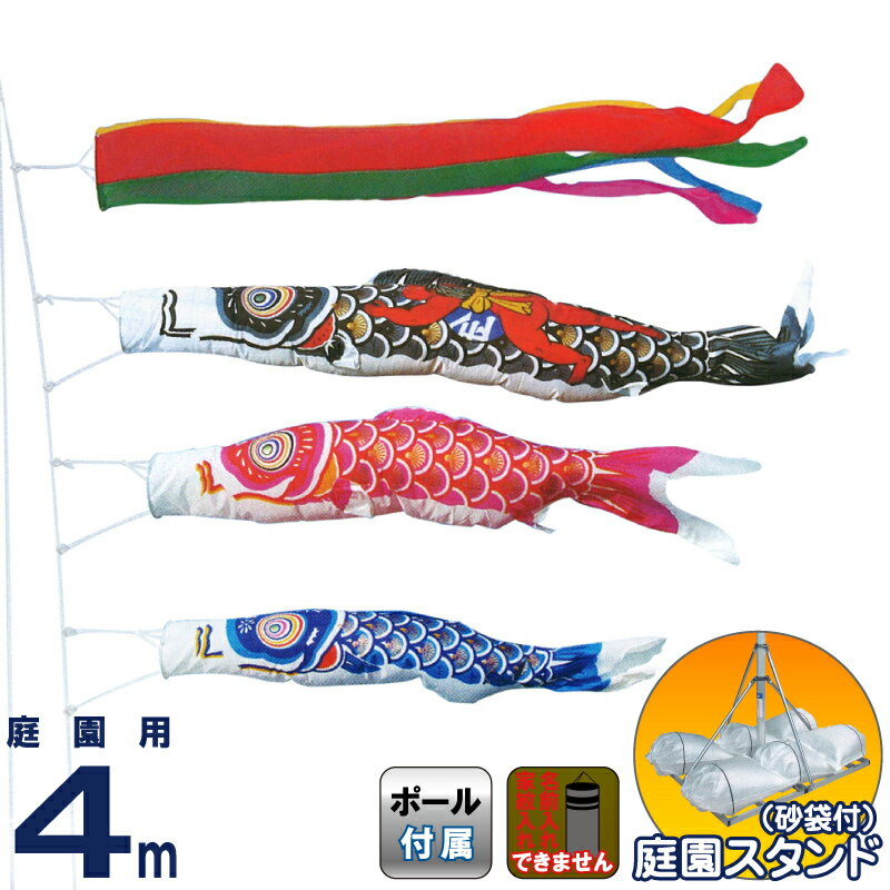 【送料無料】最安値に挑戦!2026年度新作 鯉のぼり こいのぼり キング印 鯉のぼり 庭園用 4m 庭園スタンドセット ナイロンゴールド鯉 金太郎付 五色吹流し 砂袋付フルセット 【2026年度新作】 ym-2122140