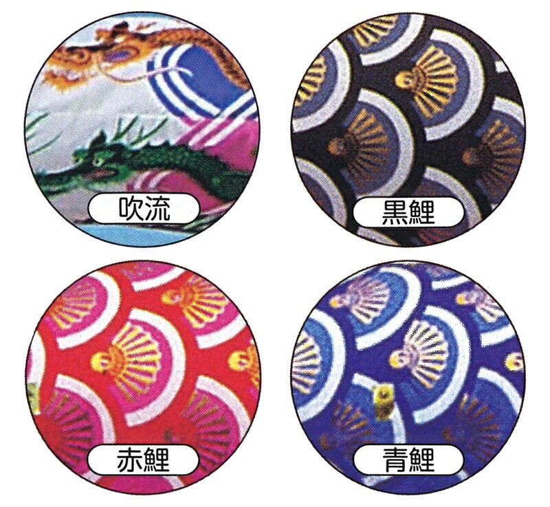 ・商品サイズにより目の描き方、ウロコの形状、ヒレの有無など、細かい仕様が変わります。こいのぼりの細かいほつれや、色むら、樹脂のメッキはげ(矢車の十字部分)等の、生産工程上生じるものは仕様であり不具合ではございませんので、予めご了承の上ご注文ください。