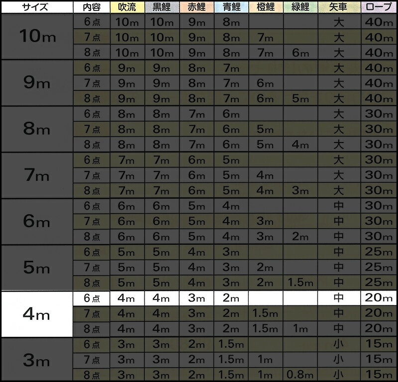 セット内容:吹流4m 黒鯉4m 赤鯉3m 青鯉2m 矢車 ロープ20m