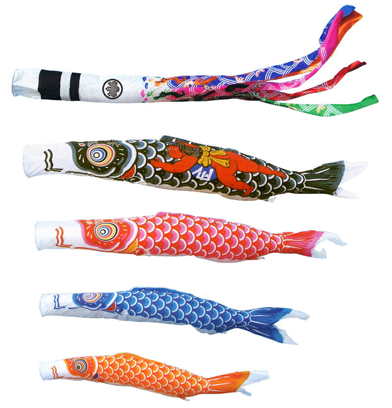 セット内容:吹流4m 黒鯉4m 赤鯉3m 青鯉2m 橙鯉1.5m 矢車 ロープ20m