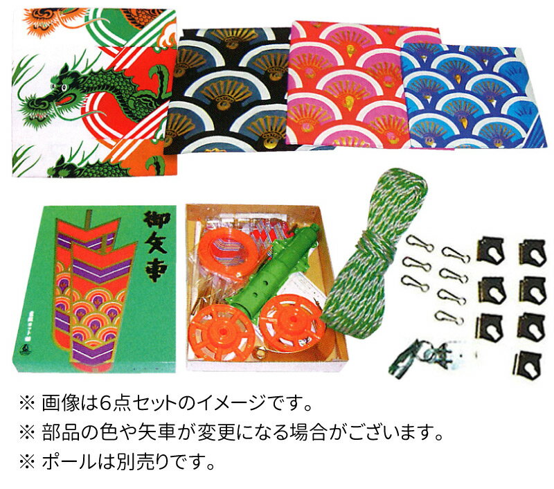 セット内容:吹流6m 黒鯉6m 赤鯉5m 青鯉4m 紫鯉3m 矢車 ロープ30m