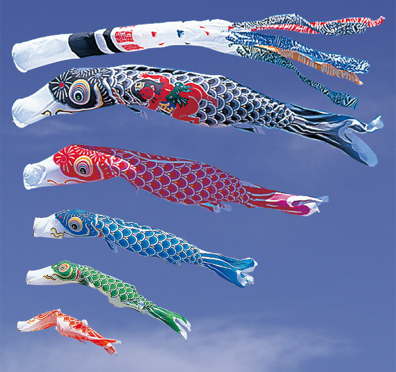 セット内容:吹流し8m 黒鯉8m 赤鯉7m 青鯉6m 緑鯉5m 橙鯉4m 矢車0.75m ロープ35m