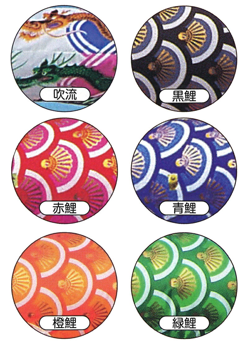・商品サイズにより目の描き方、ウロコの形状、ヒレの有無など、細かい仕様が変わります。こいのぼりの細かいほつれや、色むら、樹脂のメッキはげ(矢車の十字部分)等の、生産工程上生じるものは仕様であり不具合ではございませんので、予めご了承の上ご注文ください。