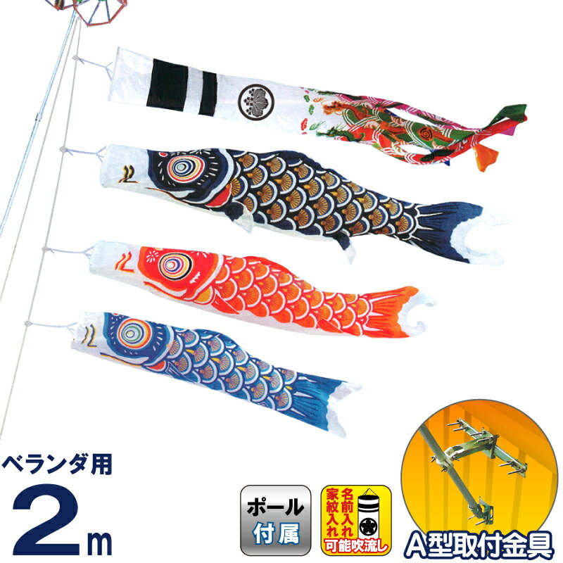 セット内容:吹流2m 黒鯉2m 赤鯉1.5m 青鯉1m ポール2.3m スカイリー矢車 ロープ6m A型取付金具