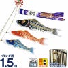 セット内容:吹流し1.5m 黒鯉1.5m 赤鯉1.2m 青鯉1m スカイリー矢車 B型取付金具 シルバーポール19号(1.9m) ロープ