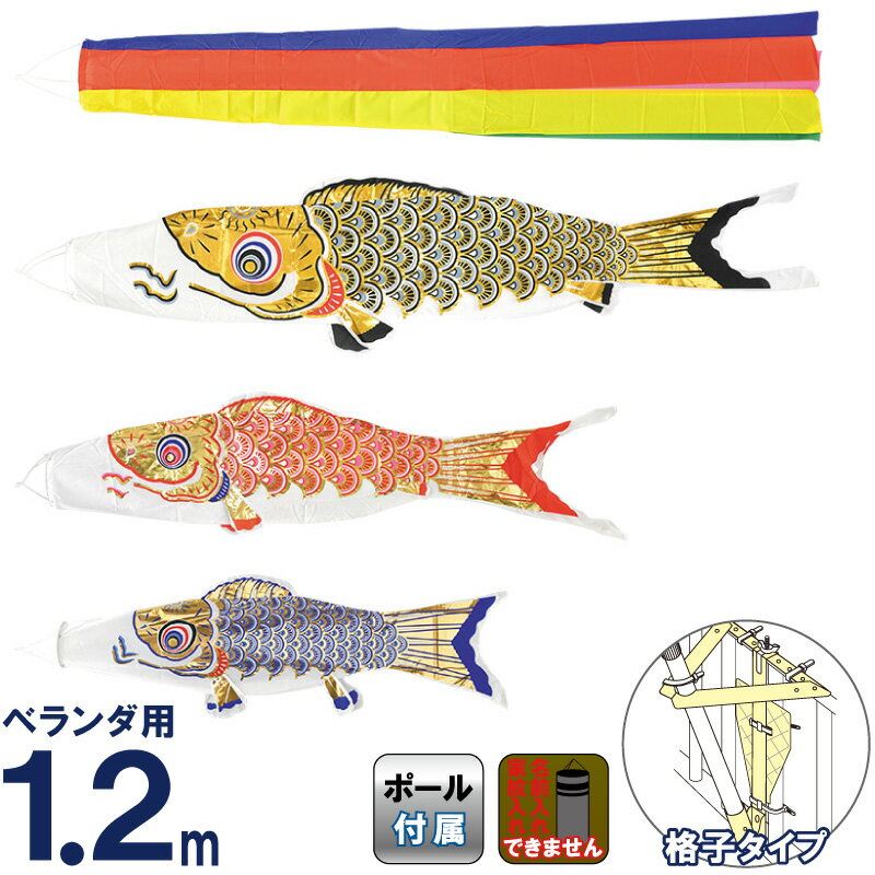 【送料無料】最安値に挑戦!2025年度新作 鯉のぼり こいのぼり フジサン鯉 鯉のぼり ベランダ用 12号 1.2m マンションセット 格子タイプ取付金具付 黄金鯉 五色吹流し ポリエステル鯉 【2025年度新作】 kb5-og-12k