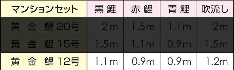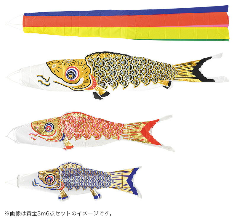 セット内容:黒鯉1.1m 赤鯉0.9m 青鯉0.9m 吹流し1.2m 矢車 ロープ 滑車 口金 伸縮ゴールドポール2.3m 5本継 取付金具(格子タイプ)