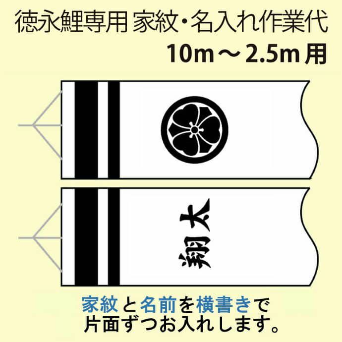 【送料無料】最安値に挑戦!2026年度新作 鯉のぼり こいのぼり 徳永鯉 鯉のぼり 10m~2.5m用 家紋1種(片面) 名前1種(片面) 横書き 徳永鯉専用 家紋・名前入れ作業代 【2026年度新作】 toku-kamon-f7