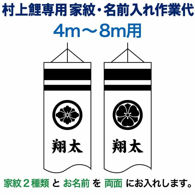 【送料無料】最安値に挑戦!2026年度新作 鯉のぼり こいのぼり 村上鯉 鯉のぼり 4m~8m 用 家紋2種(片面ずつ)+名前1種(両面) M-10 村上鯉専用 家紋・名前入れ作業代 mk-kamon-m10-4-8