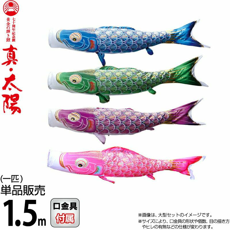 【送料無料】最安値に挑戦!2026年度新作 鯉のぼり こいのぼり 徳永鯉 鯉のぼり 単品 1.5m 真・太陽 黄金の輝き鯉 撥水加工 ポリエステルサテン生地 【2026年度新作】 003-809