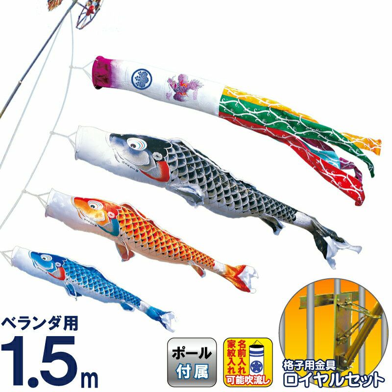 他の画像を見る 【送料無料】最安値に挑戦!2026年度新作 鯉のぼり こいのぼり 徳永鯉 鯉のぼり ベランダ用 1.5m ロイヤルセット 吉兆 慶祝の鯉 撥水加工 ポリエステルジャガード 紙製化粧箱 家紋・名入れ可能 【2026年度新作】 120-051 メーカー希望小売価格 ¥ 108,400 (税込) ¥ 86,720 税込 カートに入れる お気に入りに登録する