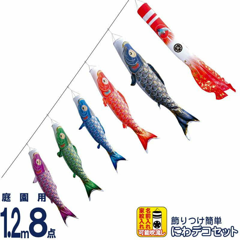 他の画像を見る 【送料無料】最安値に挑戦!2026年度新作 鯉のぼり こいのぼり 徳永鯉 鯉のぼり 庭園用 1.2m8点 にわデコセット 真・太陽 黄金の輝き鯉 撥水加工 ポリエステルサテン 家紋・名入れ可能 【2026年度新作】 410-195 メーカー希望小売価格 ¥ 82,300 (税込) ¥ 65,840 税込 カートに入れる お気に入りに登録する