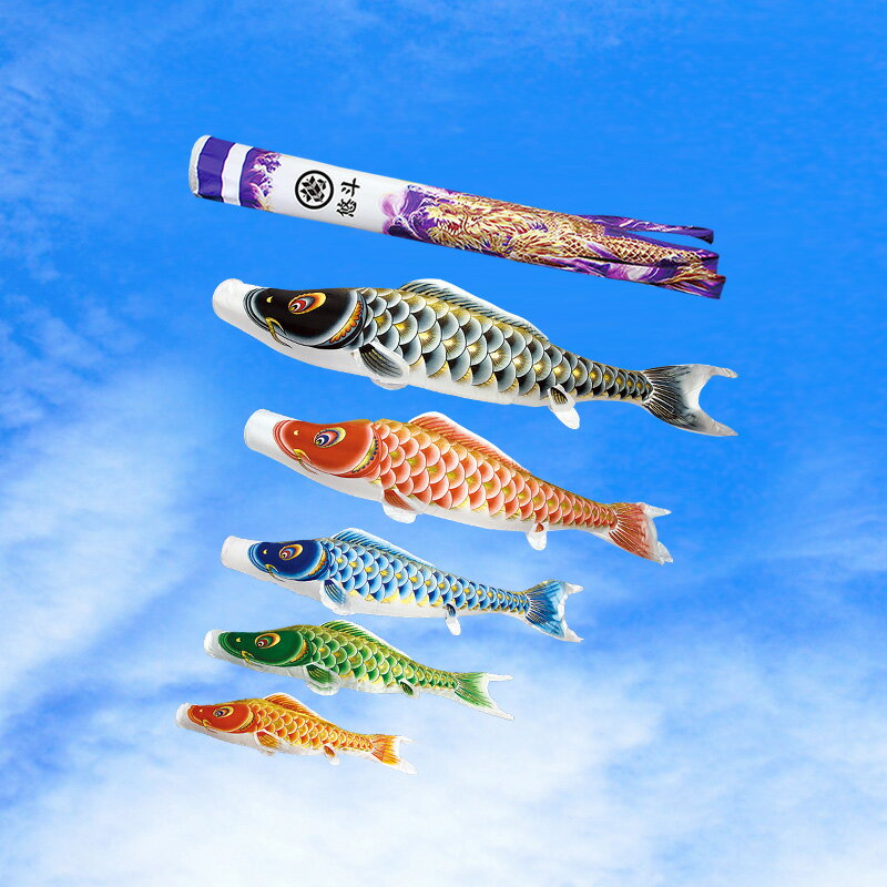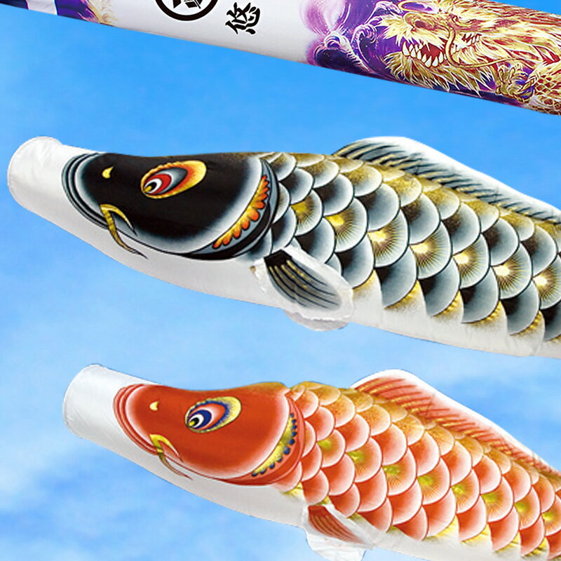 ・商品サイズにより目の描き方、ウロコの形状、ヒレの有無など、細かい仕様が変わります。こいのぼりの細かいほつれや、色むら、樹脂のメッキはげ(矢車の十字部分)等の、生産工程上生じるものは仕様であり不具合ではございませんので、予めご了承の上ご注文ください。