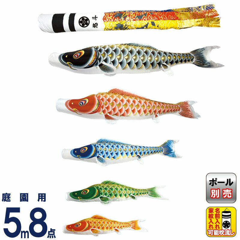 【送料無料】最安値に挑戦!2026年度新作 鯉のぼり こいのぼり 村上鯉 鯉のぼり 庭園用 5m 8点セット 大空悠々 翔龍吹流し 撥水 家紋・名入れ可 【2026年度新作】 mk-104-943