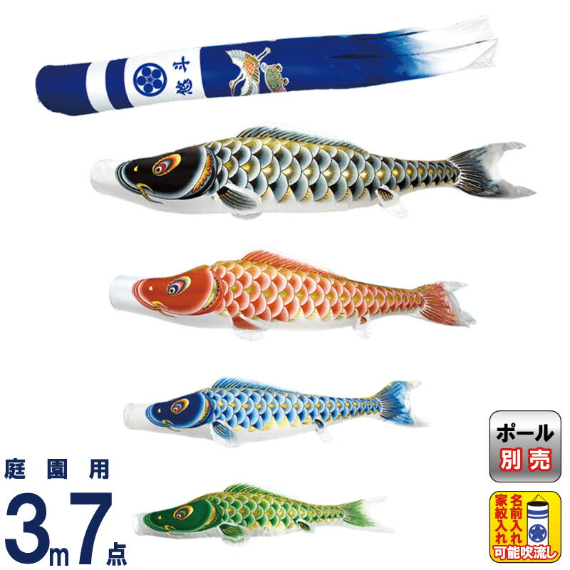 【送料無料】最安値に挑戦!2026年度新作 鯉のぼり こいのぼり 村上鯉 鯉のぼり 庭園用 3m 7点セット 大空悠々 新型鶴亀吹流し 撥水 家紋・名入れ可 【2026年度新作】 mk-106-534