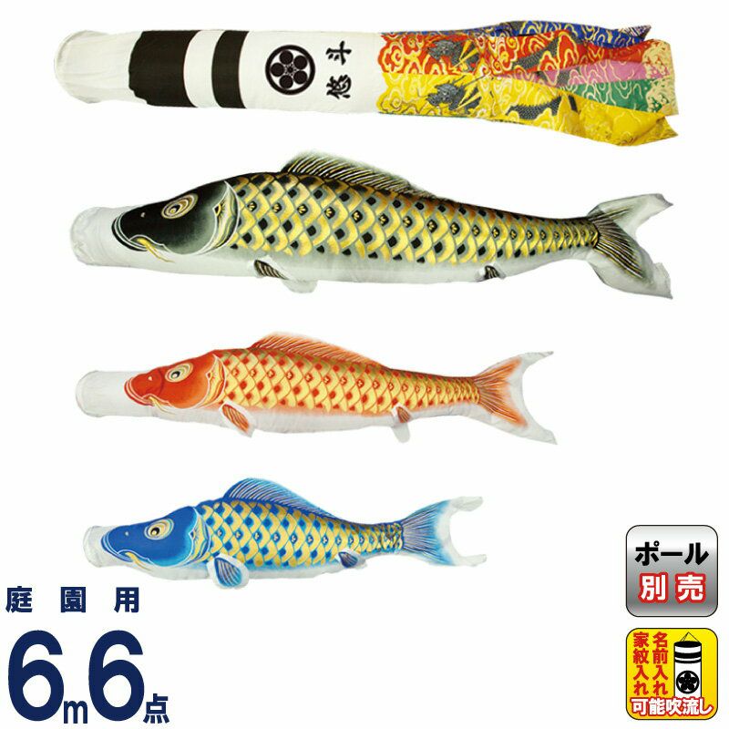 【送料無料】最安値に挑戦!2026年度新作 鯉のぼり こいのぼり 村上鯉 鯉のぼり 庭園用 6m 6点セット 黄金輝 翔龍吹流し 撥水 家紋・名入れ可 【2026年度新作】 mk-104-332