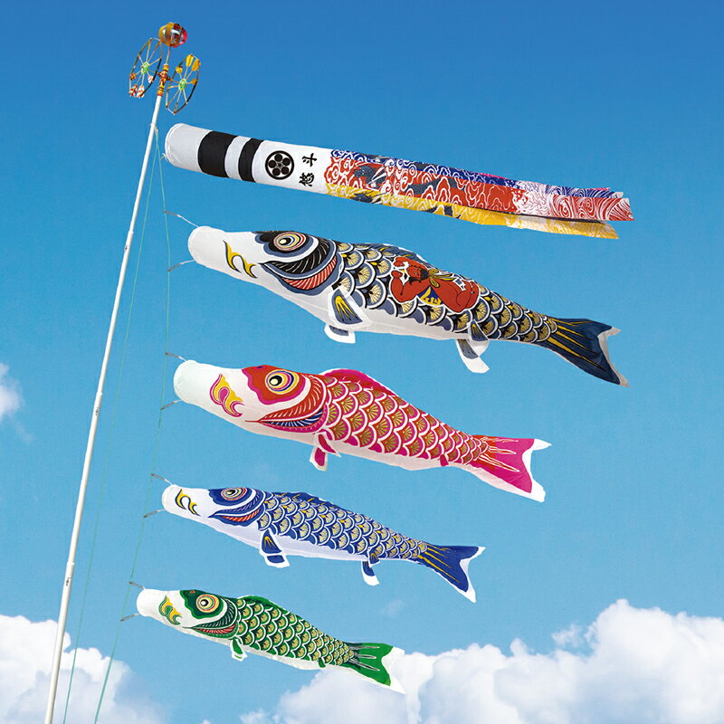 ・商品サイズにより目の描き方、ウロコの形状、ヒレの有無など、細かい仕様が変わります。こいのぼりの細かいほつれや、色むら、樹脂のメッキはげ(矢車の十字部分)等の、生産工程上生じるものは仕様であり不具合ではございませんので、予めご了承の上ご注文ください。