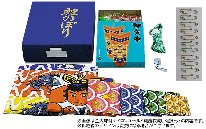 セット内容:吹流し7m 黒鯉7m 赤鯉6m 青鯉5m 緑鯉4m 矢車(大) ロープ30m