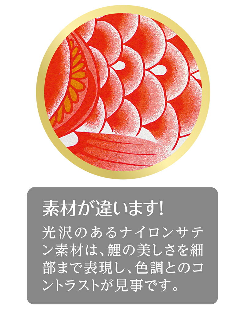光沢のある高級ナイロンサテン生地を使用、シンプルなカラーグラデーションを施し、上品な落ち着きを持つ新感覚鯉のぼりです。